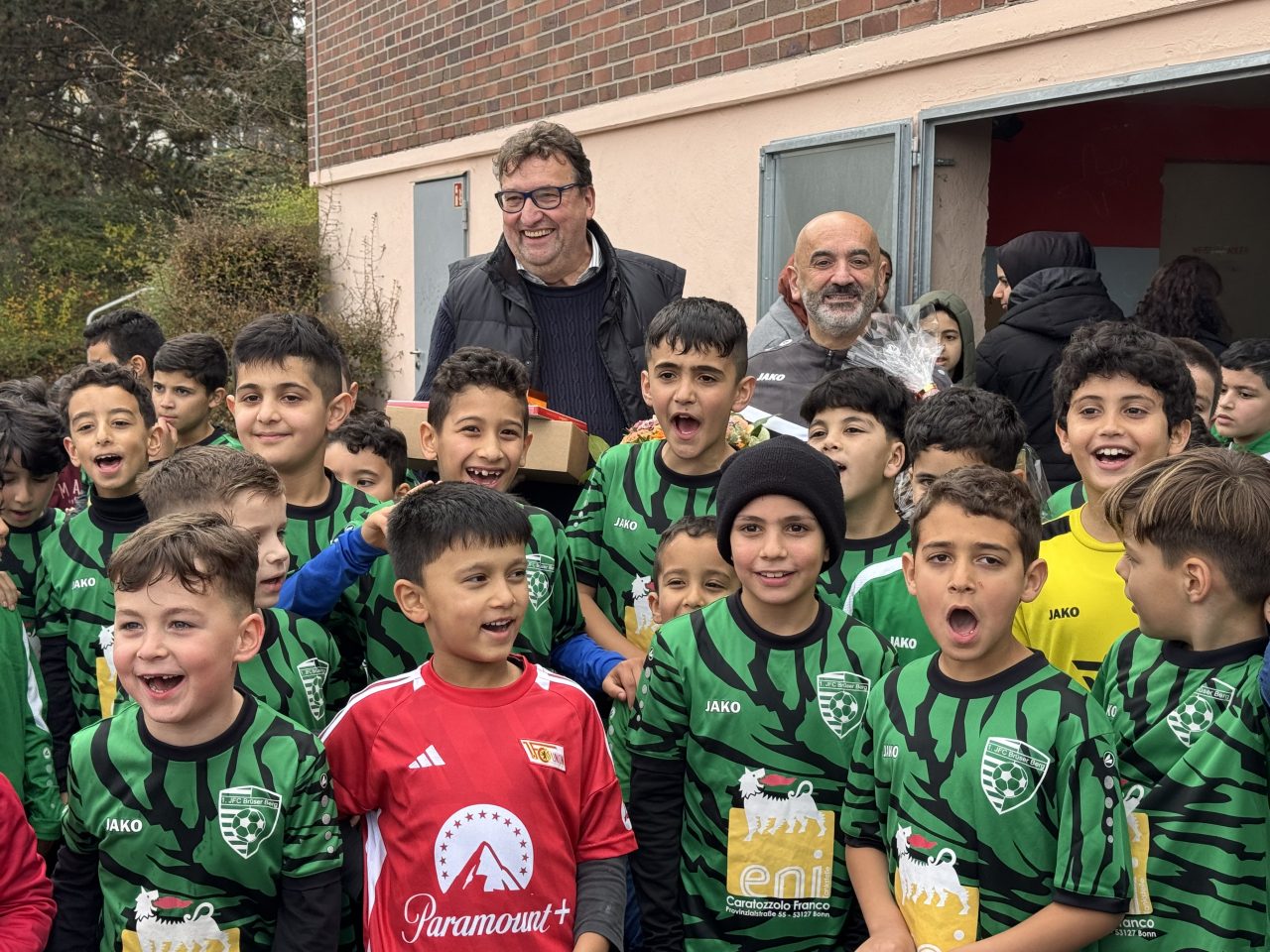 Fröhliche Gesichter umringen die Sponsoren Franco von der Eni Tankstelle in Lengsdorf und den Chef der Steuerkanzlei Bontax in Alfter. Vielen Dank für Ihre Unterstützung.